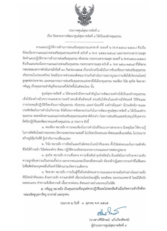 ประกาศเจตนารมณ์เป็นองค์กรคุณธรรมต้นแบบ