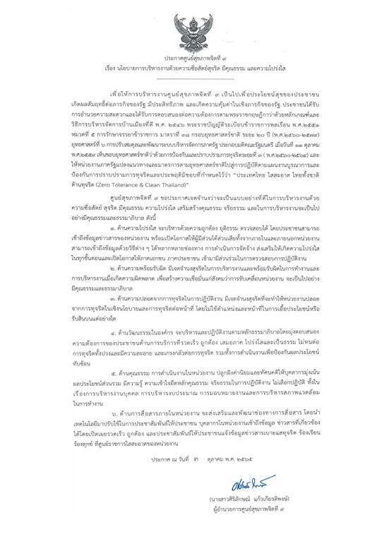 นโบายการบริหารงานด้วยความซื่อสัตย์สุจริต มีคุณธรรม โปร่งใส