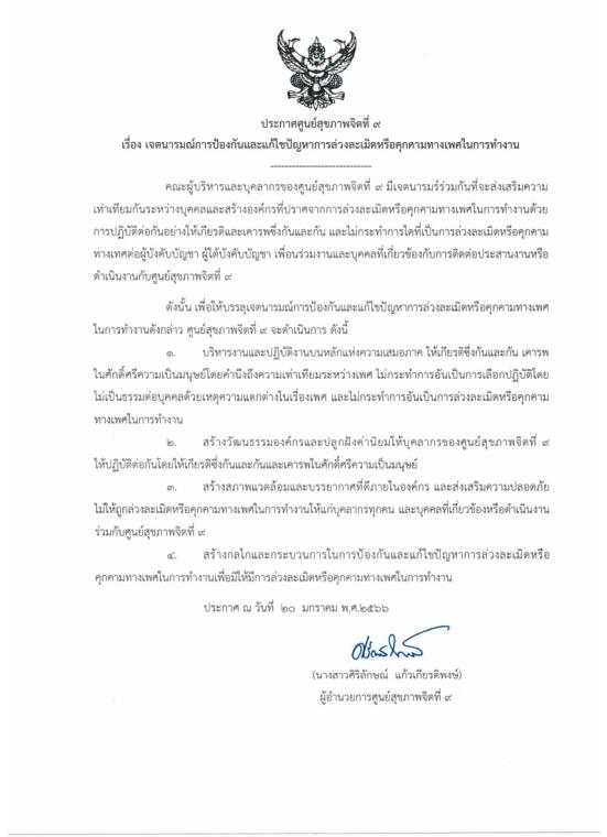 นโยบายการบริหารงานศูนย์สุขภาพจิตที่ 9